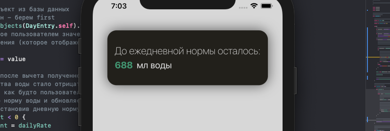 Данное приложение подсчитывает сколько вам осталось выпить воды до достижения суточной нормы.