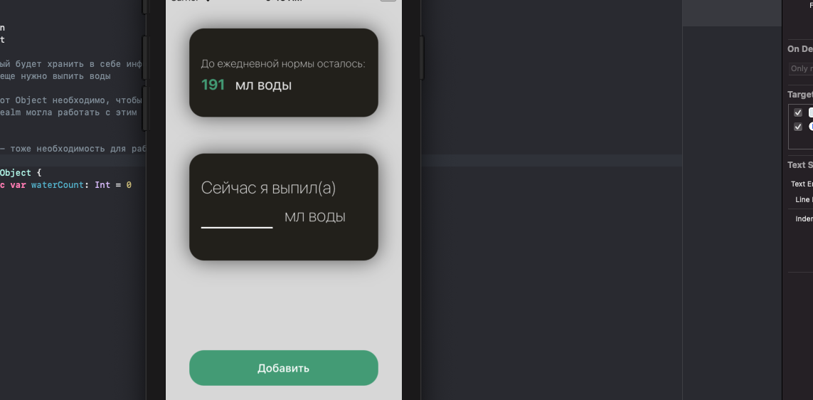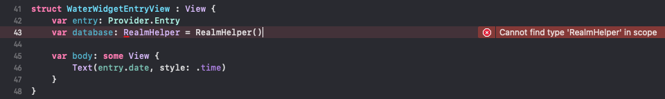 Попытка сбилдить приложение приведет нас в разочарование фразой "RealmSwift не найдет в WaterWidgetExtension" (примерный перевод).