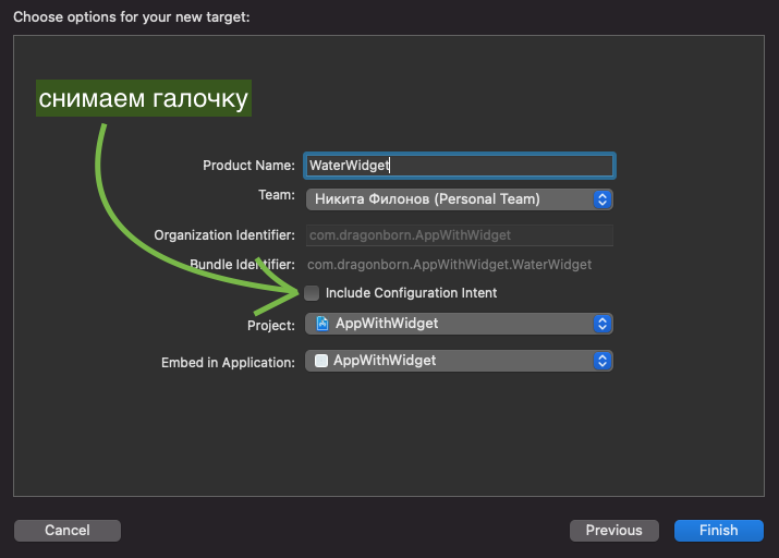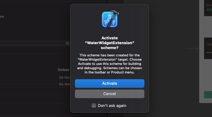 Исправляем это, ставя галочку и для WaterWidgetExtension: