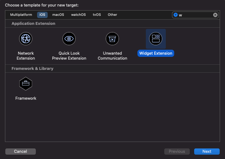 Далее выбираем Widget Extension (как ни странно):