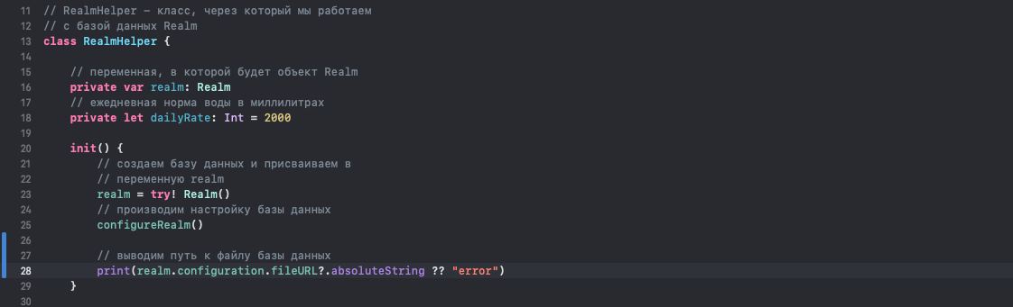 Для этого поставим в init RealmHelper'a команду, которая печатает в консоль расположение файла default.realm: