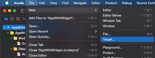 Теперь выбираем target - AppWithWidget: