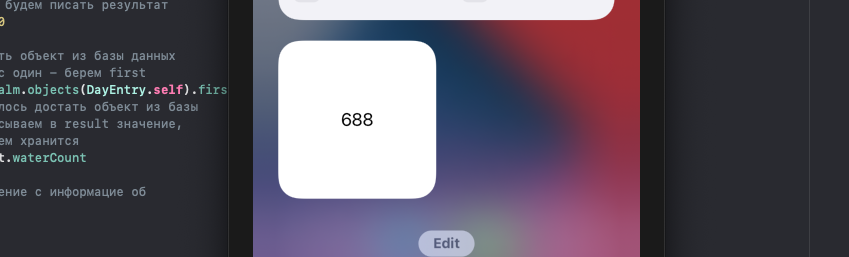 Открываем наш WaterWidgetEntryView и видим, что все хорошо, ошибка пропала: