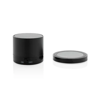 Беспроводная колонка 5 Вт на индукционной базе . Колонка поставляется с зарядной станцией, при помощи которой она подзаряжается .
