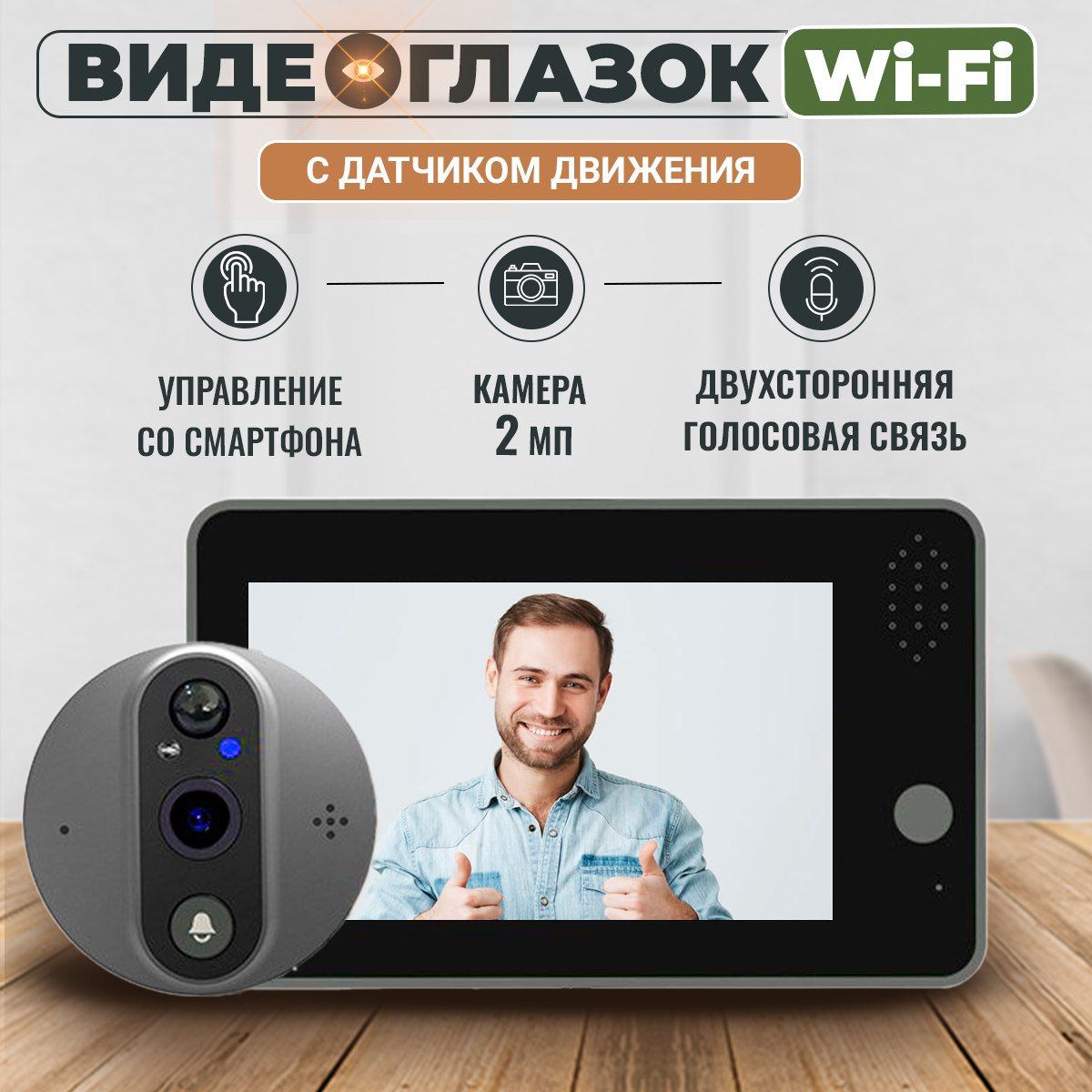 Беспроводной wifi видеоглазок с датчиком движения