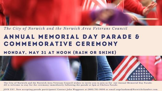 The City of Norwich and the Norwich Area Veterans Council wish to invite you to participate in our Annual Memorial Day Parade 2021.
