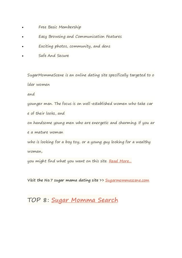 Premium sugar momma websites for dating : Our top-7; SeekingArrangement review; AshleyMadison review; CougarLife review; EliteSingles review; Match .com review; SeekingCougar review; Older Women Dating review