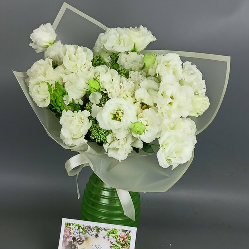Bir buket beyaz eustoma, hassasiyetin, sevginin ve saflığın sembolüdür. Doğum günü, düğün veya yıldönümü için mükemmel bir hediye olacaktır. Buket, güzelliği ve zarafeti ile öne çıkan beyaz eustomalardan oluşmaktadır. Saflığı ve masumiyeti simgeliyorlar, bu da onları bir düğün veya doğum günü hediyesi için mükemmel bir seçim haline getiriyor. MotleyGrass'tan bir beyaz eustoma buketi sadece bir buket değil, aynı zamanda bir sanat eseridir. Kompozisyon, her çiçeğin yerinde olacağı şekilde, uyumlu ve şık bir kompozisyon yaratacak şekilde oluşturulmuştur. MotleyGrass'tan bir beyaz eustoma buketi sadece bir hediye değil, aynı zamanda sevgi ve saygının sembolüdür. Böyle bir hediye, alıcıyı güzelliği ve hassasiyetiyle uzun süre memnun edecektir.En sıcak duygularınızı ifade etmek için inanılmaz yumuşak bir eustoma! Sevdiklerinize, annenize, meslektaşınıza bir buket beyaz eustoma verin, randevunuzda yanınıza alın veya iç mekanınızı dekore etmesi ve sizi güzellik ve tazelikle memnun etmesi için sipariş edin! her durum için uygundur. Zevkle verin! Özenli teslimat ve hoş sürprizle biz ilgileneceğiz!