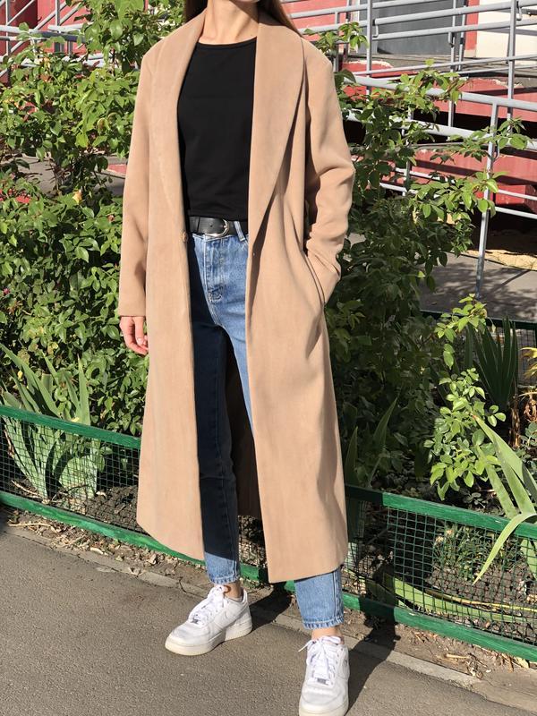 Бежевое Пальто С Кроссовками Фото