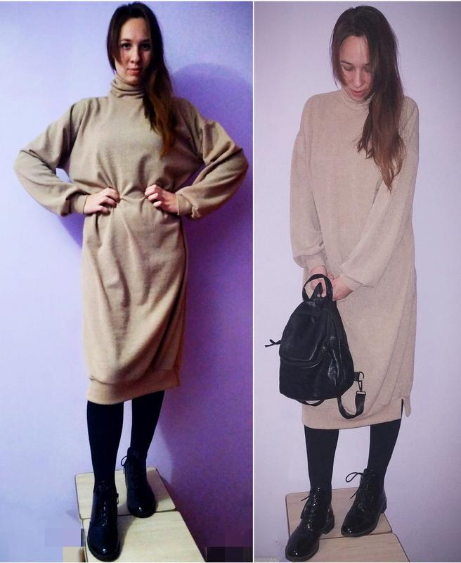 Бежевое трикотажное платье оверсайз