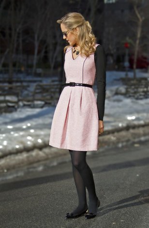 Женский калейдоскоп » Мода » Бежевое платье и черные колготки (27 фото) .