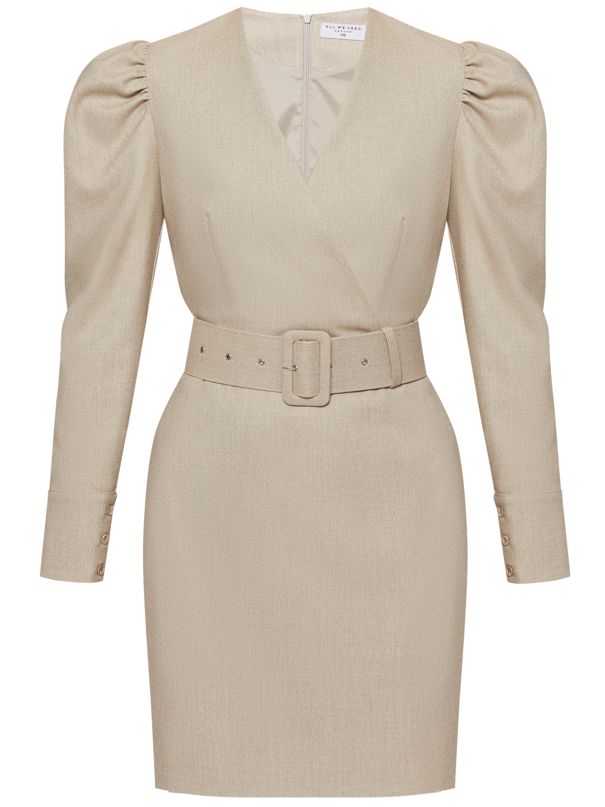 Бежевое Платье С Объемными Рукавами