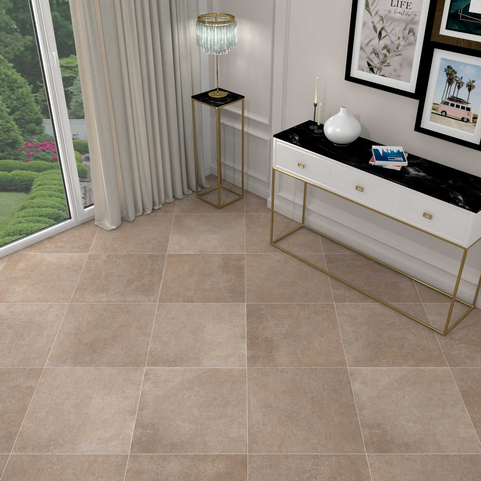 Бежевая плитка на пол: примеры в интерьере