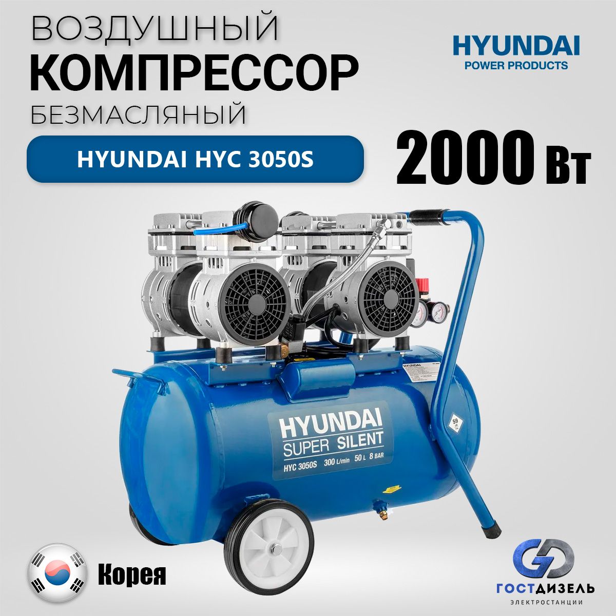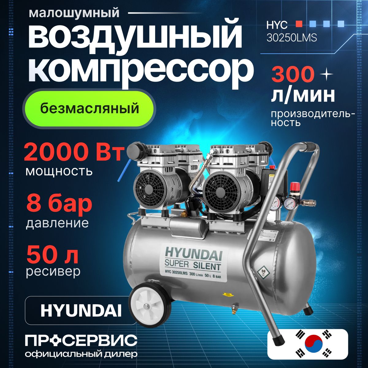 Безмасляный компрессор hyundai 50