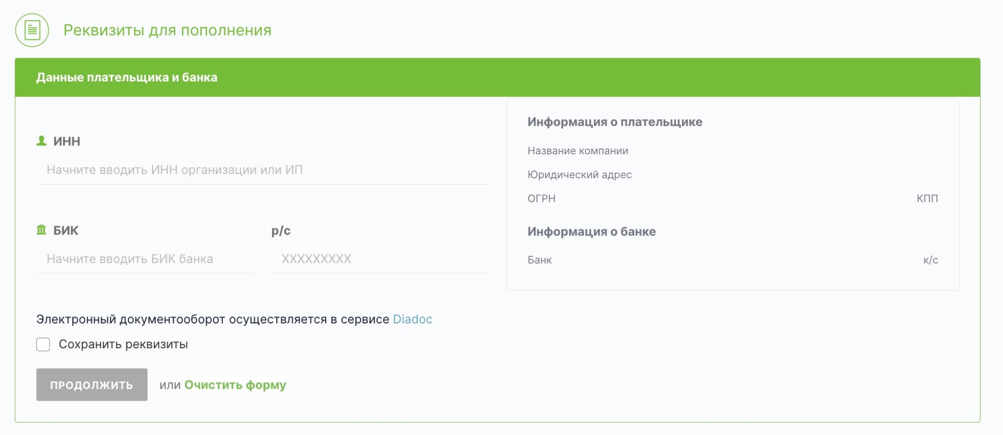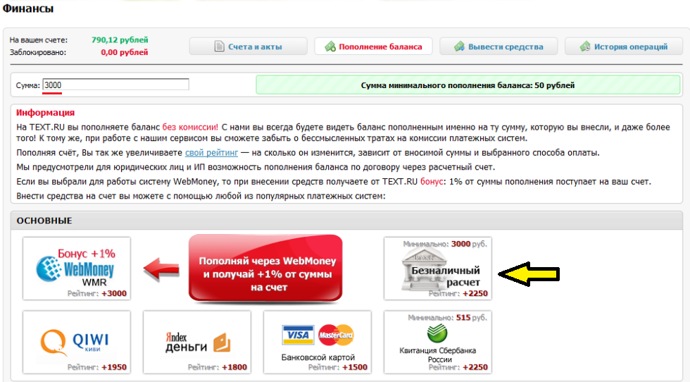 Безналичное пополнение счета