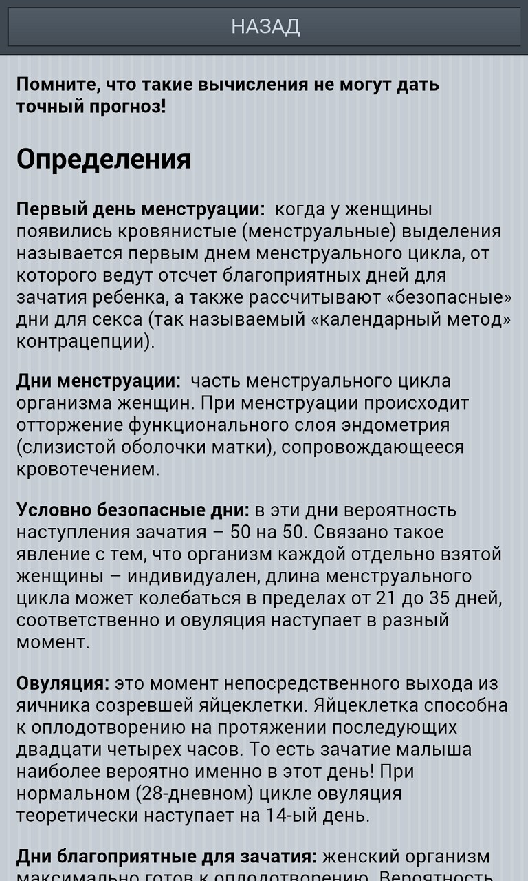 Калькулятор - опасные и безопасные дни для зачатия . . .