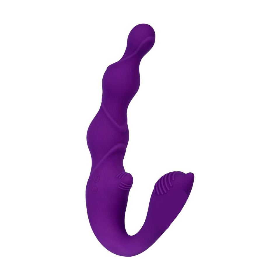 Безремневой страпон с вибрацией и пультом управления Vibrating Silicone Strapless Strapon, фиолетовый