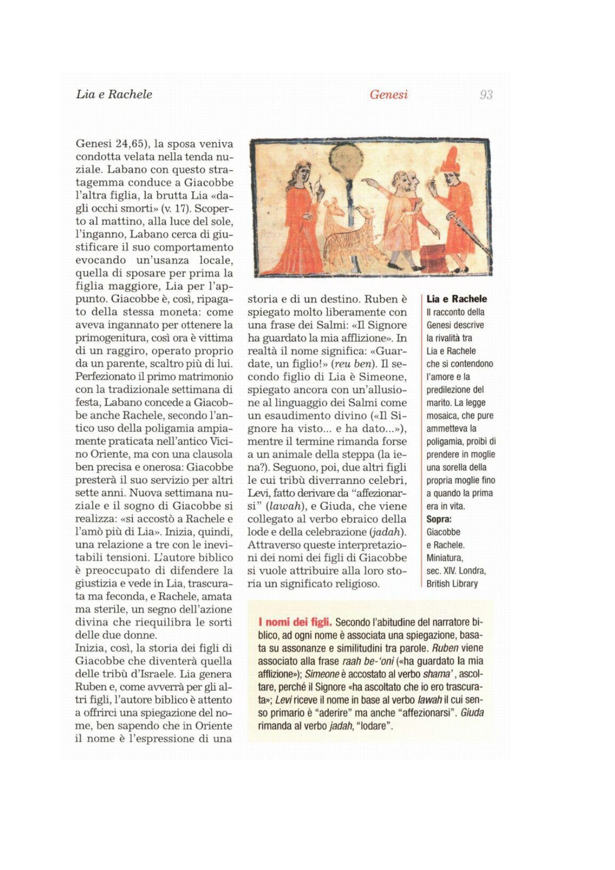 31Ora il Signore, vedendo che Lia veniva trascurata, la rese feconda, mentre Rachele rimaneva sterile. 32Così Lia concepì e partorì un figlio e lo chiamò Ruben, perché disse: «Il Signore ha visto la mia umiliazione; certo, ora mio marito mi amerà». 33Concepì ancora e partorì un figlio, e disse: «Il Signore ha udito che io ero trascurata e mi ha dato anche questo». E lo chiamò Simeone. 34Concepì ancora e partorì un figlio, e disse: «Questa volta mio marito mi si affezionerà, perché gli ho partorito tre figli». Per questo lo chiamò Levi. 35Concepì ancora e partorì un figlio, e disse: «Questa volta loderò il Signore». Per questo lo chiamò Giuda. E cessò di avere figli.