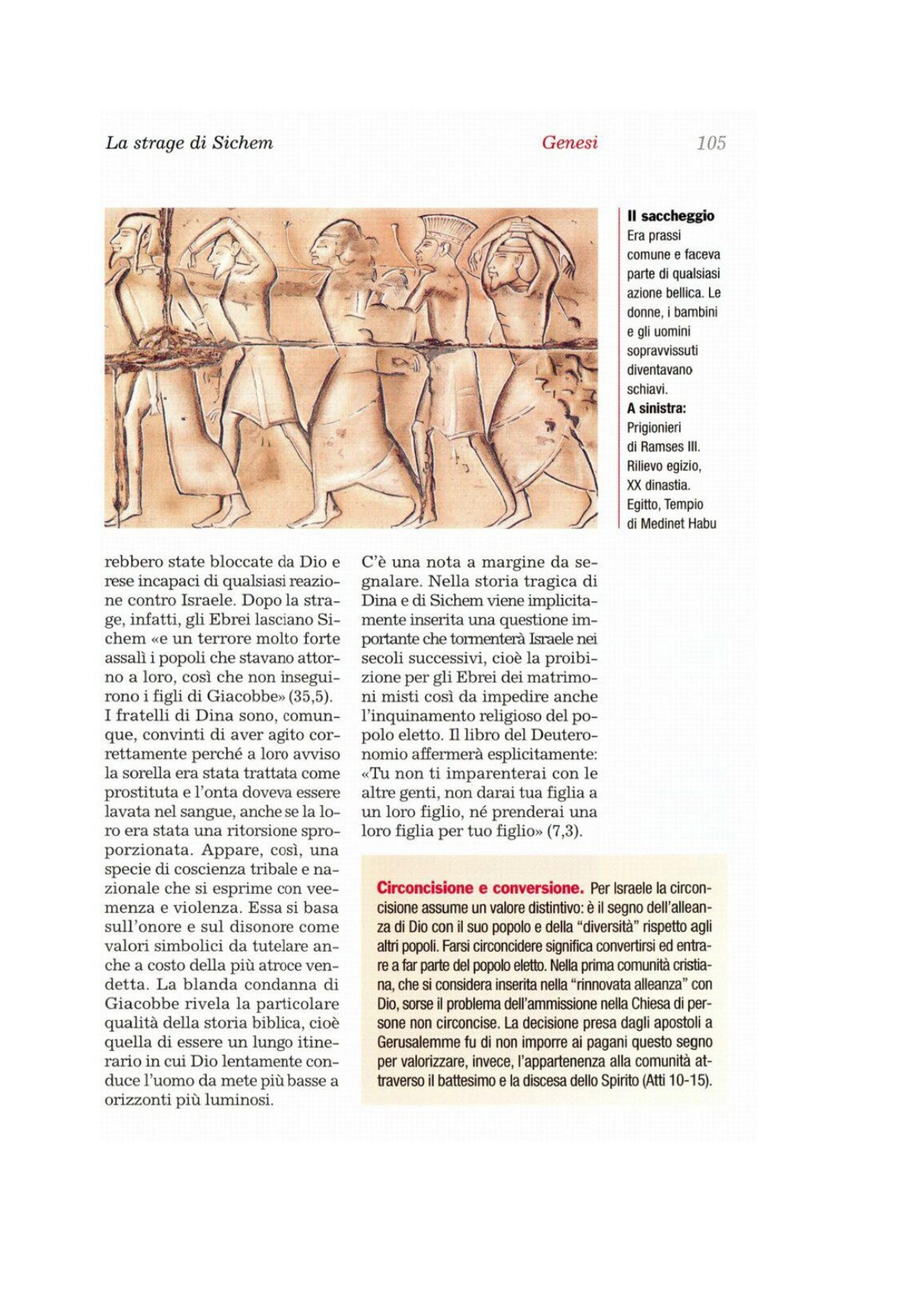 13Allora i figli di Giacobbe risposero a Sichem e a suo padre Camor e parlarono con inganno, poiché quegli aveva disonorato la loro sorella Dina. 14Dissero loro: «Non possiamo fare questo, dare la nostra sorella a un uomo non circonciso, perché ciò sarebbe un disonore per noi. 15Acconsentiremo alla vostra richiesta solo a questa condizione: diventare come noi, circoncidendo ogni vostro maschio. 16In tal caso noi vi daremo le nostre figlie e ci prenderemo le vostre, abiteremo con voi e diventeremo un solo popolo. 17Ma se voi non ci ascoltate a proposito della nostra circoncisione, prenderemo la nostra ragazza e ce ne andremo».