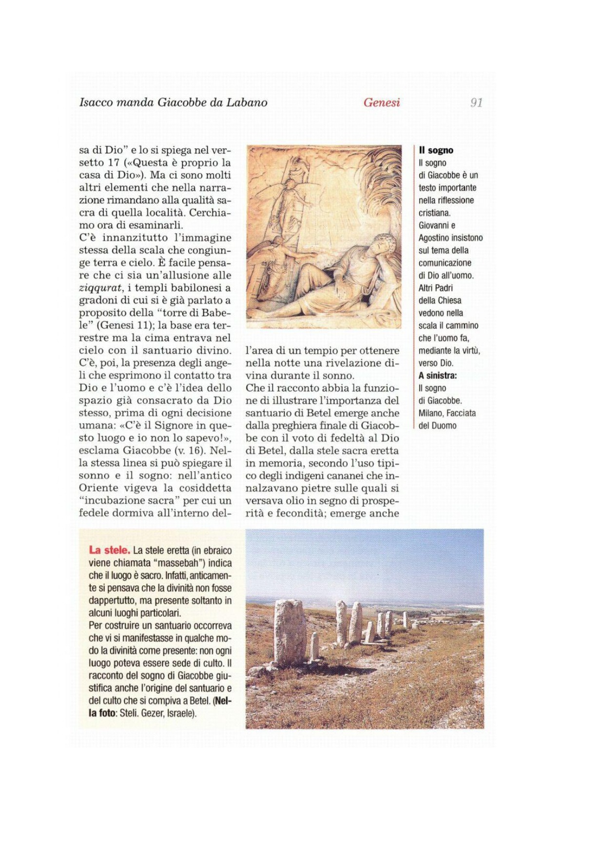 16Giacobbe si svegliò dal sonno e disse: «Certo, il Signore è in questo luogo e io non lo sapevo». 17Ebbe timore e disse: «Quanto è terribile questo luogo! Questa è proprio la casa di Dio, questa è la porta del cielo». 18La mattina Giacobbe si alzò, prese la pietra che si era posta come guanciale, la eresse come una stele e versò olio sulla sua sommità. 19E chiamò quel luogo Betel, mentre prima di allora la città si chiamava Luz.