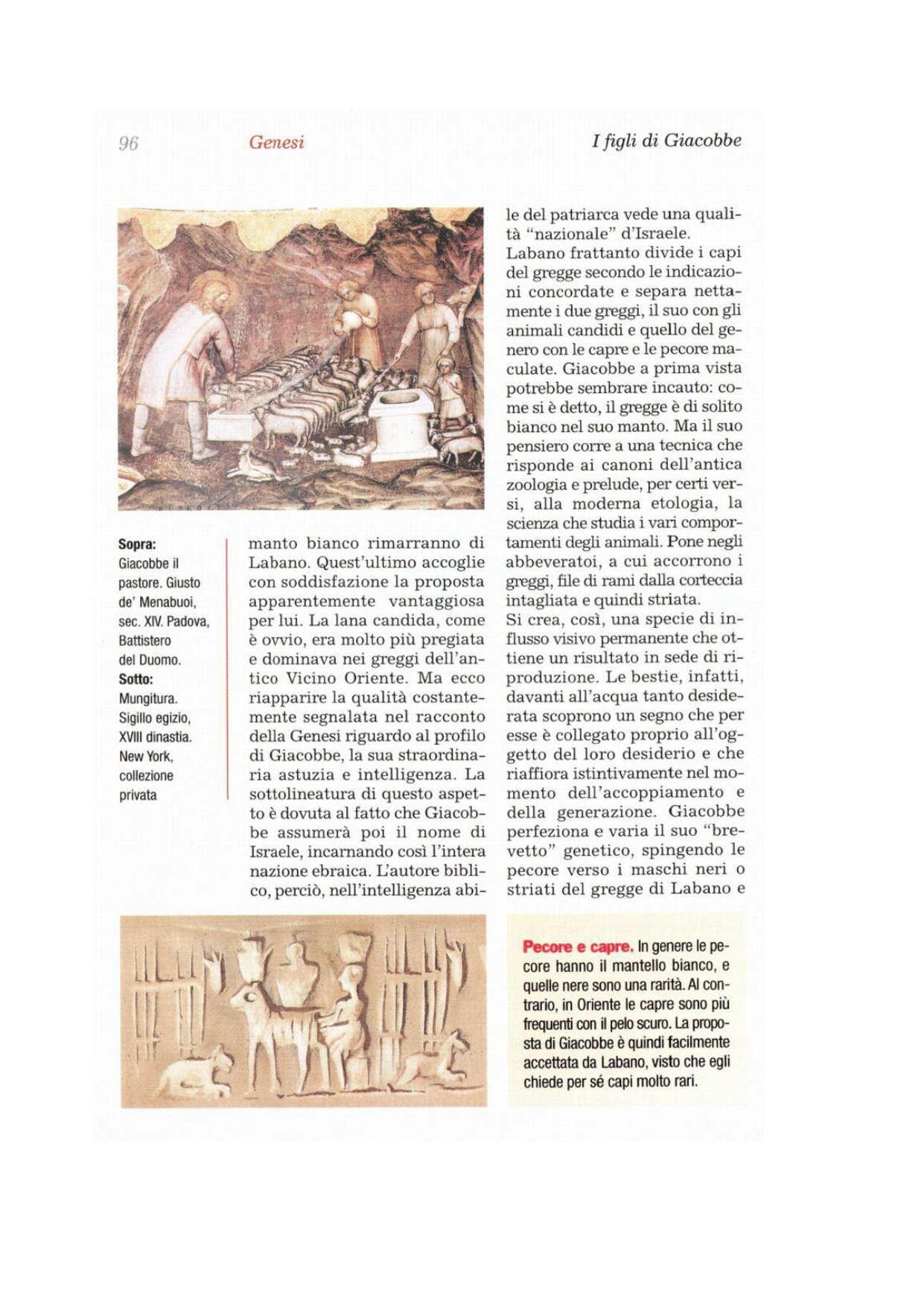 37Ma Giacobbe prese rami freschi di pioppo, di mandorlo e di platano, ne intagliò la corteccia a strisce bianche, mettendo a nudo il bianco dei rami. 38Mise i rami così scortecciati nei canaletti agli abbeveratoi dell'acqua, dove veniva a bere il bestiame, bene in vista per le bestie che andavano in calore quando venivano a bere. 39Così le bestie andarono in calore di fronte ai rami e le capre figliarono capretti striati, punteggiati e chiazzati. 40Quanto alle pecore, Giacobbe le separò e fece sì che le bestie avessero davanti a loro gli animali striati e tutti quelli di colore scuro del gregge di Làbano. E i branchi che si era così formato per sé, non li mise insieme al gregge di Làbano.