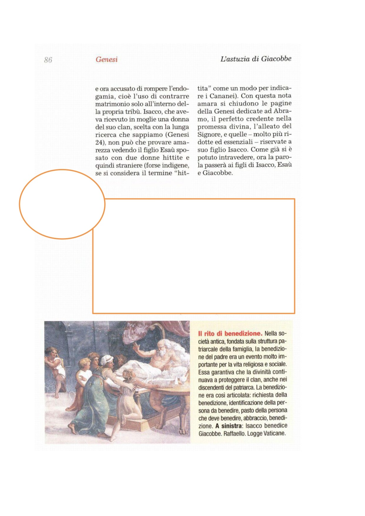 1 Isacco era vecchio e gli occhi gli si erano così indeboliti che non ci vedeva più. Chiamò il figlio maggiore, Esaù, e gli disse: «Figlio mio». Gli rispose: «Eccomi». 2Riprese: «Vedi, io sono vecchio e ignoro il giorno della mia morte. 3Ebbene, prendi le tue armi, la tua farètra e il tuo arco, va' in campagna e caccia per me della selvaggina. 4Poi preparami un piatto di mio gusto e portamelo; io lo mangerò affinché possa benedirti prima di morire». 5Ora Rebecca ascoltava, mentre Isacco parlava al figlio Esaù. Andò dunque Esaù in campagna a caccia di selvaggina da portare a casa. 6Rebecca disse al figlio Giacobbe: «Ecco, ho sentito tuo padre dire a tuo fratello Esaù: 7«Portami della selvaggina e preparami un piatto, lo mangerò e poi ti benedirò alla presenza del Signore prima di morire». 8Ora, figlio mio, da' retta a quel che ti ordino. 9Va' subito al gregge e prendimi di là due bei capretti; io preparerò un piatto per tuo padre, secondo il suo gusto. 10Così tu lo porterai a tuo padre, che ne mangerà, perché ti benedica prima di morire». 11Rispose Giacobbe a Rebecca, sua madre: «Sai bene che mio fratello Esaù è peloso, mentre io ho la pelle liscia. 12Forse mio padre mi toccherà e si accorgerà che mi prendo gioco di lui e attirerò sopra di me una maledizione invece di una benedizione». 13Ma sua madre gli disse: «Ricada pure su di me la tua maledizione, figlio mio! Tu dammi retta e va' a prendermi i capretti». 14Allora egli andò a prenderli e li portò alla madre, così la madre ne fece un piatto secondo il gusto di suo padre. 15Rebecca prese i vestiti più belli del figlio maggiore, Esaù, che erano in casa presso di lei, e li fece indossare al figlio minore, Giacobbe; 16con le pelli dei capretti rivestì le sue braccia e la parte liscia del collo. 17Poi mise in mano a suo figlio Giacobbe il piatto e il pane che aveva preparato.
