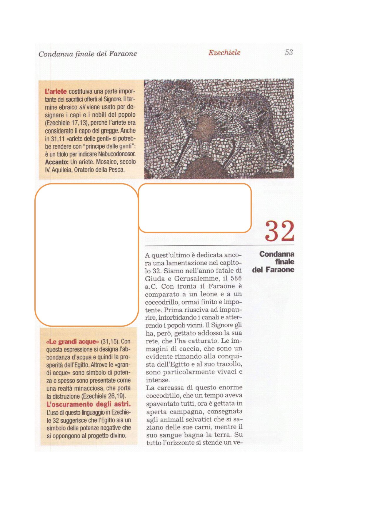 31Il faraone li vedrà e si consolerà per tutta la sua gente; il faraone e tutto il suo esercito saranno trafitti di spada. Oracolo del Signore Dio. 32Poiché aveva seminato il terrore nella terra dei viventi, il faraone con tutta la sua gente giace in mezzo ai non circoncisi, con i trafitti di spada». Oracolo del Signore Dio.