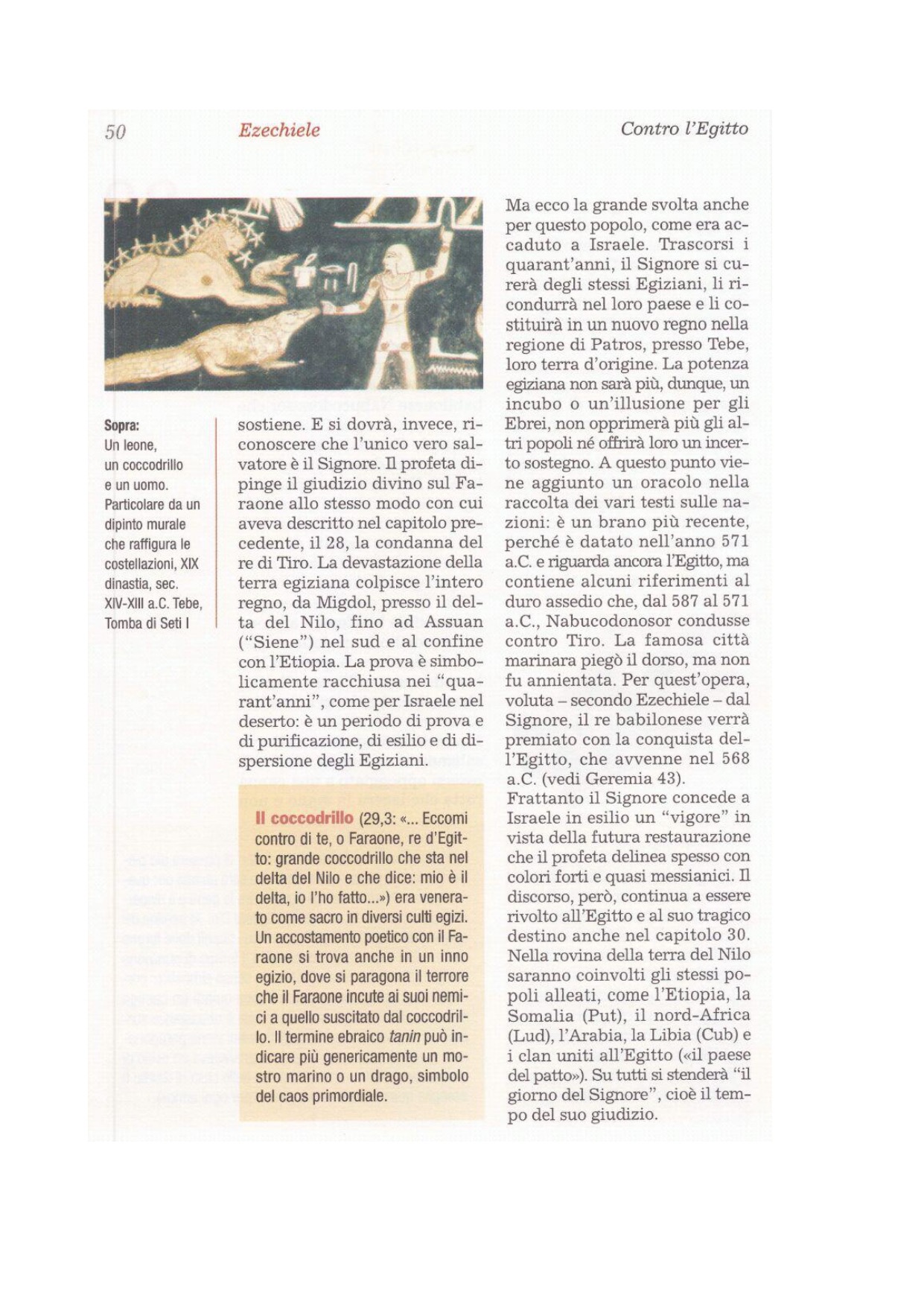 9Renderò sgomento il cuore di molti popoli, quando farò giungere la notizia della tua rovina alle genti, in regioni a te sconosciute. 10Per te farò stupire molti popoli e tremeranno i loro re a causa tua, quando brandirò la spada davanti a loro. Nel giorno della tua rovina ognuno tremerà ad ogni istante per la sua vita. 11Poiché così dice il Signore Dio: La spada del re di Babilonia ti raggiungerà.