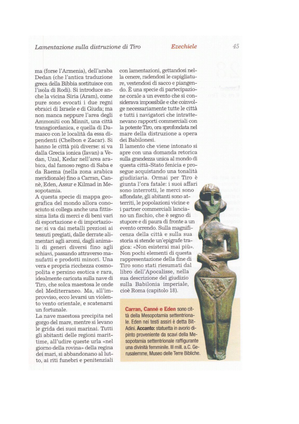 23Carran, Canne, Eden, i mercanti di Saba, Assur, Chilmad trafficavano con te. 24Al tuo mercato scambiavano con te vesti di lusso, mantelli di porpora e di broccato, tappeti tessuti a vari colori, funi ritorte e robuste. 25Le navi di Tarsis viaggiavano portando le tue mercanzie.