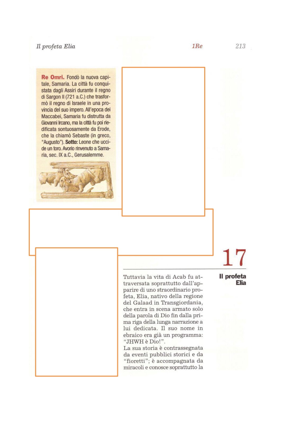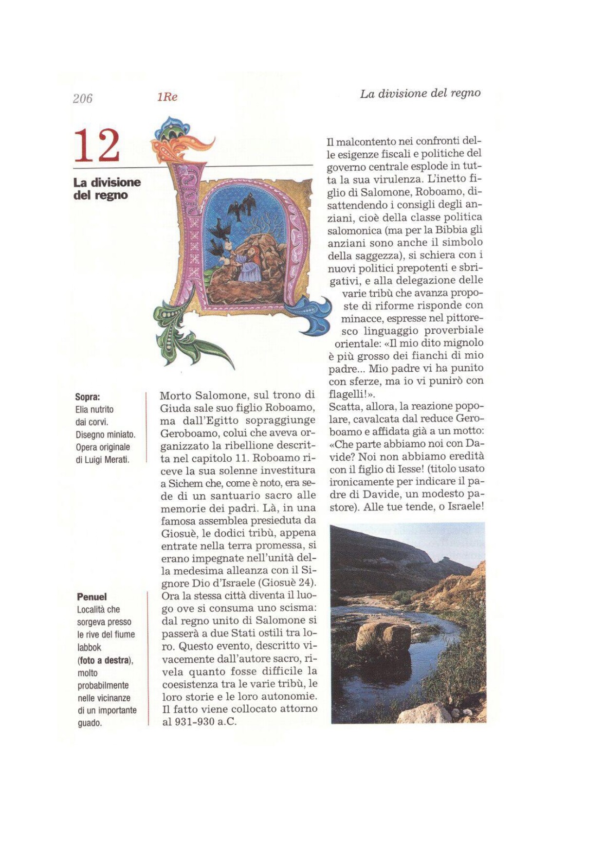 2A lui fu rivolta questa parola del Signore: 3«Vattene di qui, dirigiti verso oriente; nasconditi presso il torrente Cherìt, che è a oriente del Giordano. 4Berrai dal torrente e i corvi per mio comando ti porteranno da mangiare». 5Egli partì e fece secondo la parola del Signore; andò a stabilirsi accanto al torrente Cherìt, che è a oriente del Giordano. 6I corvi gli portavano pane e carne al mattino, e pane e carne alla sera; egli beveva dal torrente.