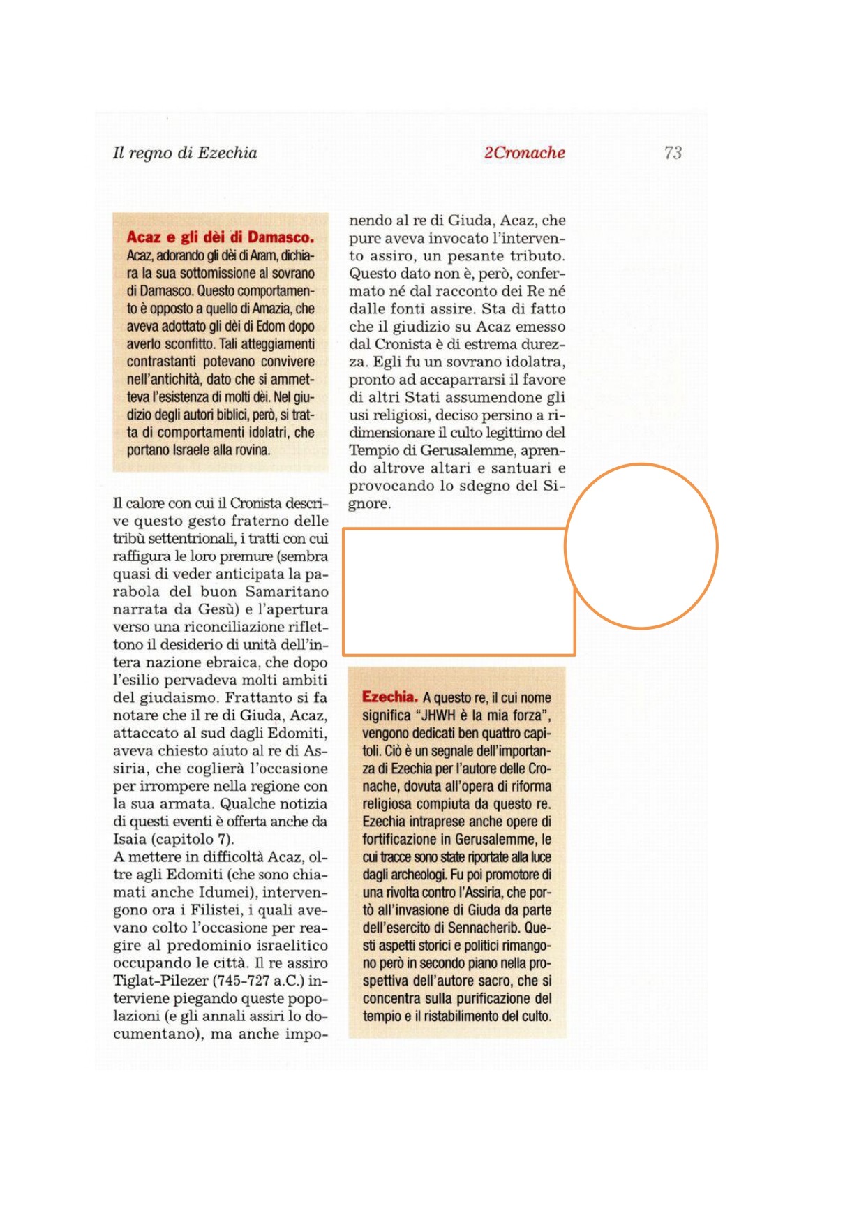 20Tiglat-Pilèser, re d'Assiria, venne contro di lui e lo oppresse anziché sostenerlo. 21Acaz spogliò il tempio del Signore, il palazzo del re e dei prìncipi e consegnò tutto all'Assiria, ma non ne ricevette alcun aiuto.