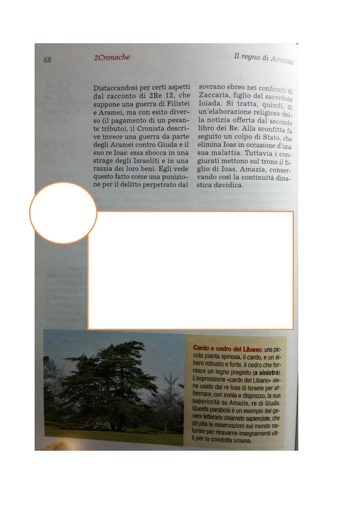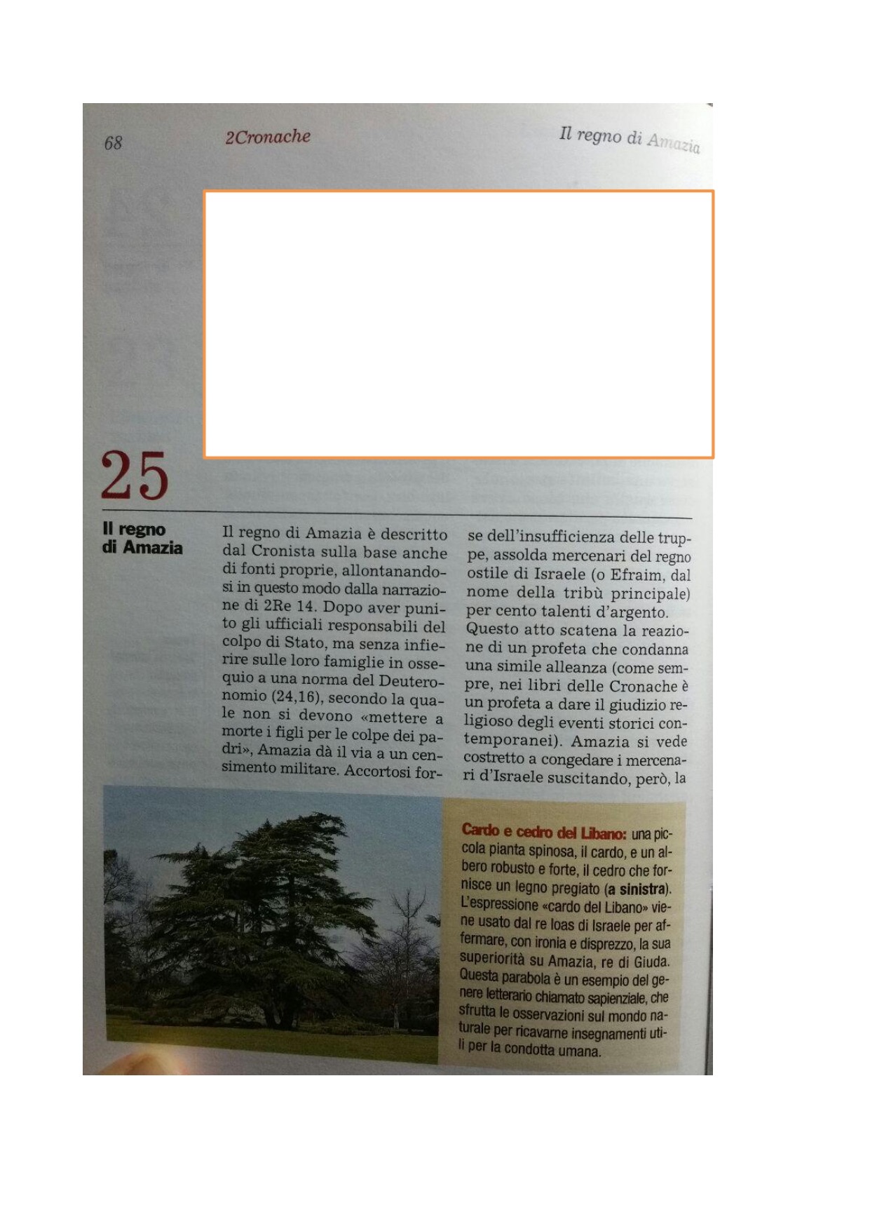 17Consigliatosi, Amasia, re di Giuda, mandò a dire a Ioas, figlio di Ioacàz, figlio di Ieu, re d'Israele: «Vieni, affrontiamoci!». 18Ioas, re d'Israele, fece rispondere ad Amasia, re di Giuda: «Il cardo del Libano mandò a dire al cedro del Libano: Da' in moglie tua figlia a mio figlio. Ma passò una bestia selvatica del Libano e calpestò il cardo. 19Tu ripeti: Ecco, ho sconfitto Edom! E il tuo cuore ti ha esaltato gloriandosi. Ma stattene nella tua casa! Perché ti precipiti in una disfatta? Potresti soccombere tu e Giuda con te». 20Ma Amasia non lo ascoltò. Era volontà di Dio che fossero consegnati nelle mani del nemico, perché si erano rivolti agli dèi di Edom.