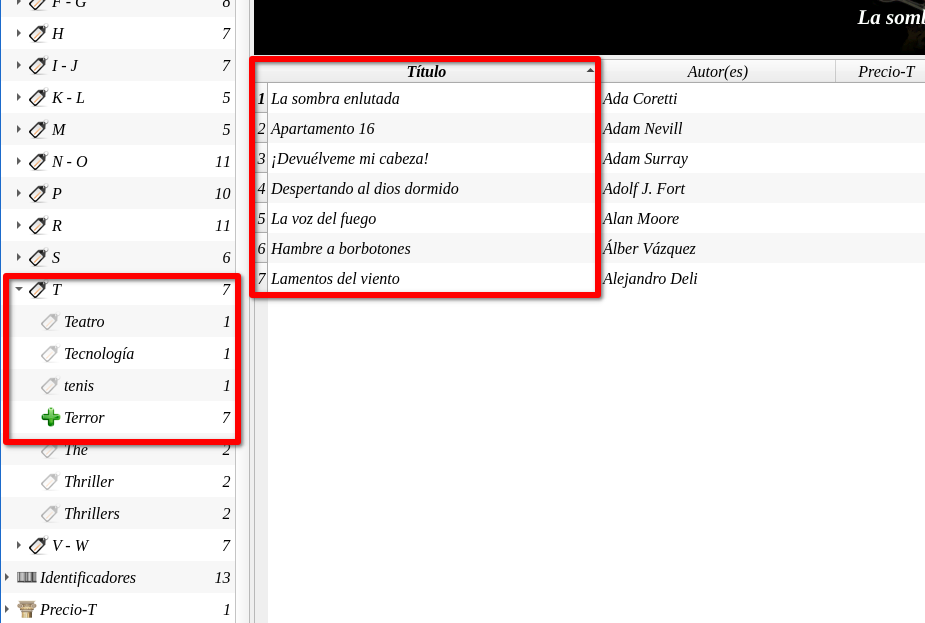 En la barra de busqueda escribimos tag:"Terror" y nos devolverá todas las etiquetas de terror que tengamos.