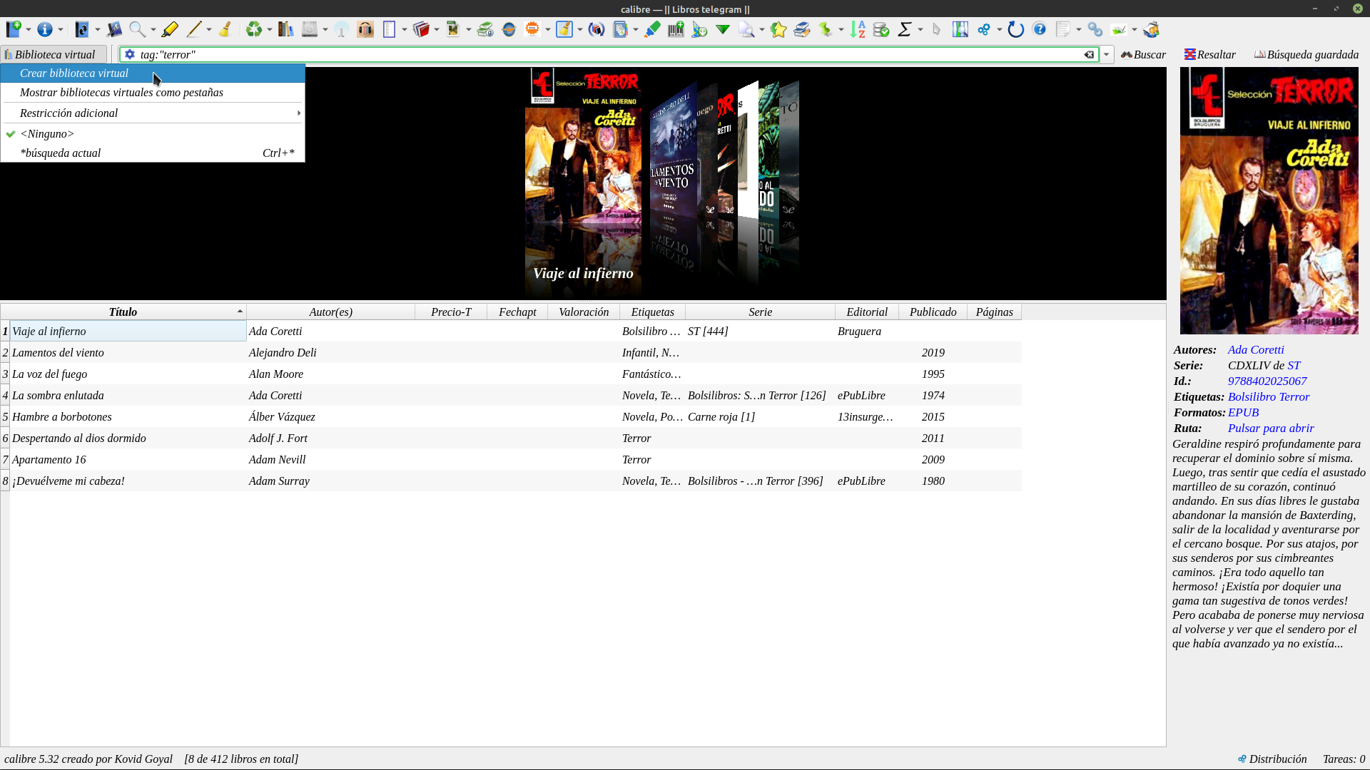 WalterEn este momento vamos a crear una biblioteca Virtual de Terror, La podremos crear de cualquier etiqueca que quisieramos.