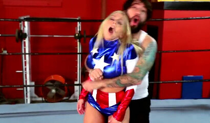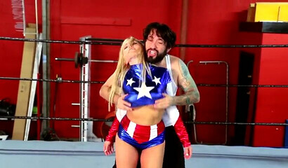 Big tit blonde wrestling