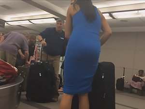 My hands were busy with my candid camera or I would seriously help her get the luggage in the airport . She stood there in her pencil tight dress and her body shape was ravishing . I caught a few glances of her big boobs and cleavage when she leaned down and I loved how she struggles to lift heavy suitcases . Seriously, if I wasn't busy with voyeur stuff, I'd help her out like a cavalier .