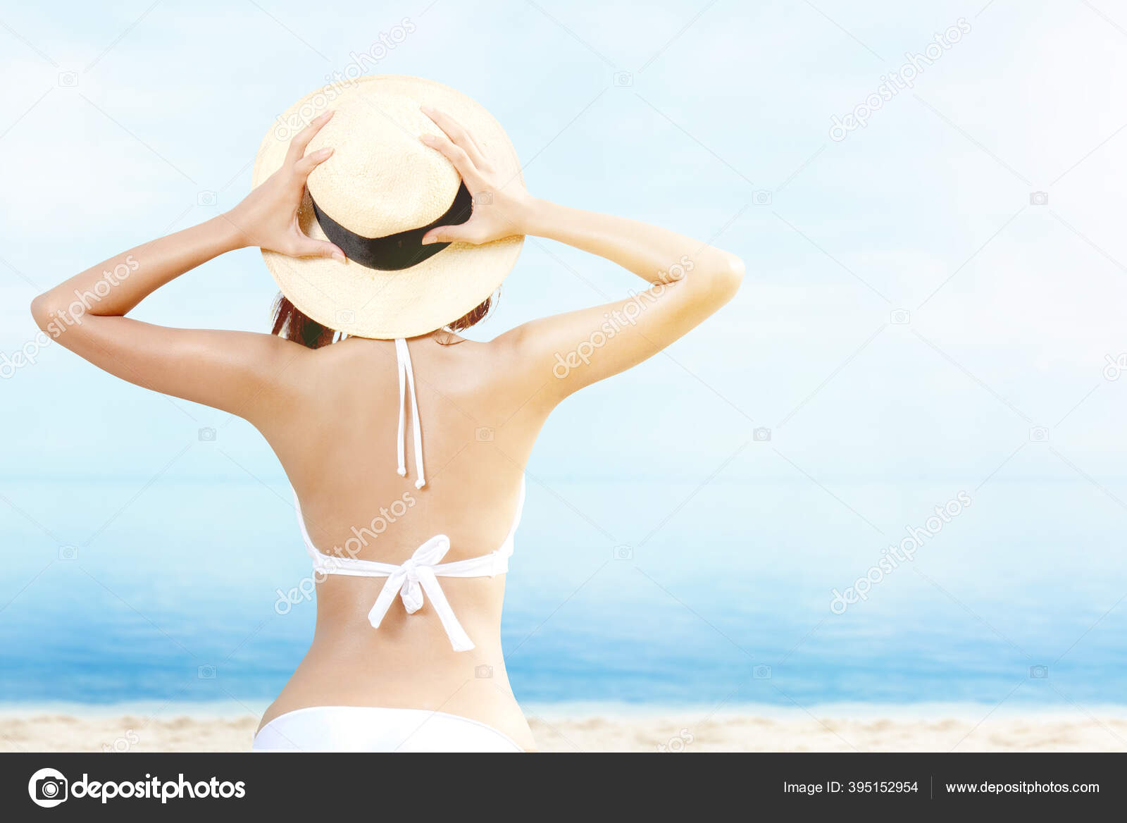Bikiniluder machen sich am Strand startklar