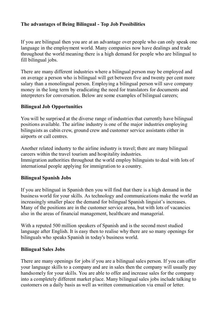 Bilingualism Essay | Bartleby
