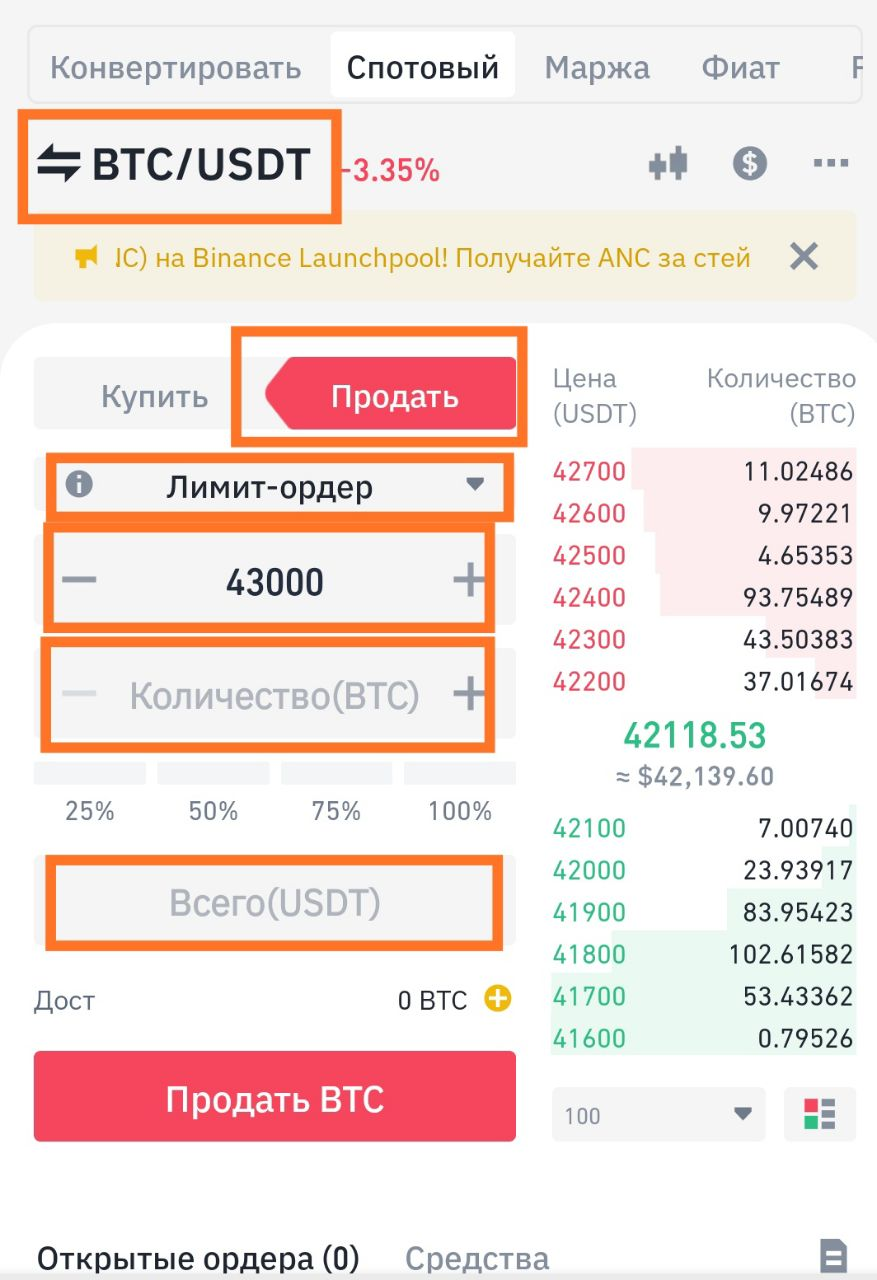 Binance - выставляем ордера