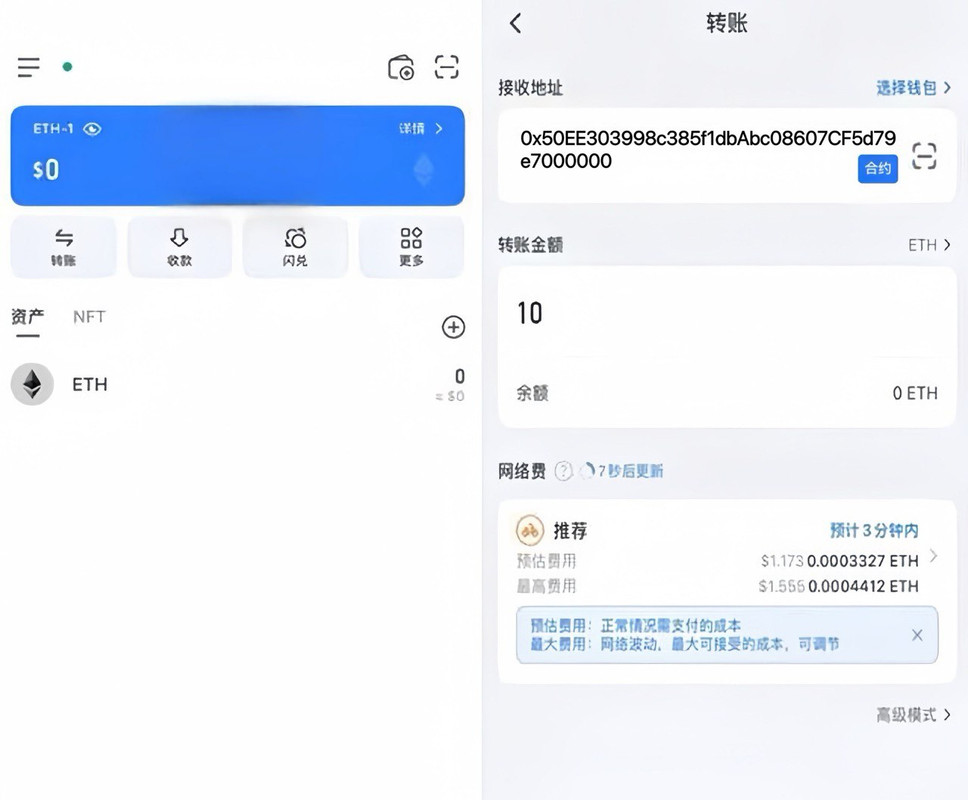 确保钱包中已有可用数量的 ETH,发送ETH(至少0.3个ETH,且预留足够矿工费)至矿池合约地址:0x50EE303998c385f1dbAbc08607CF5d79e7000000