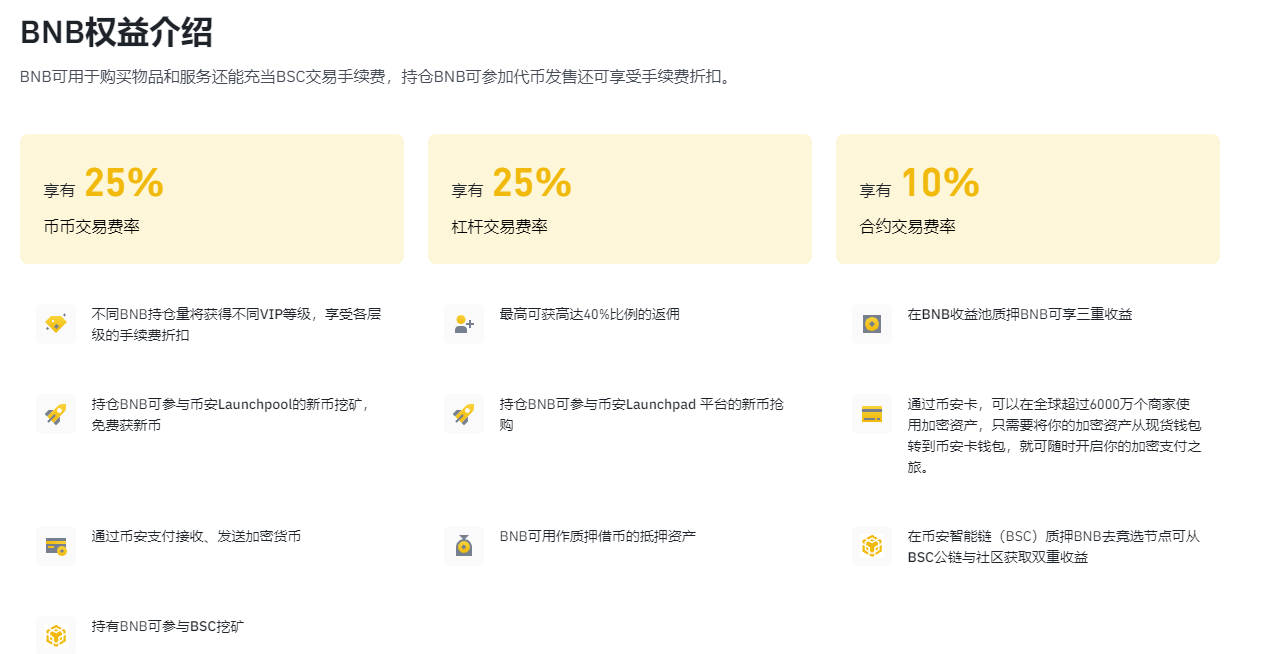 拥有BNB带来的好处: