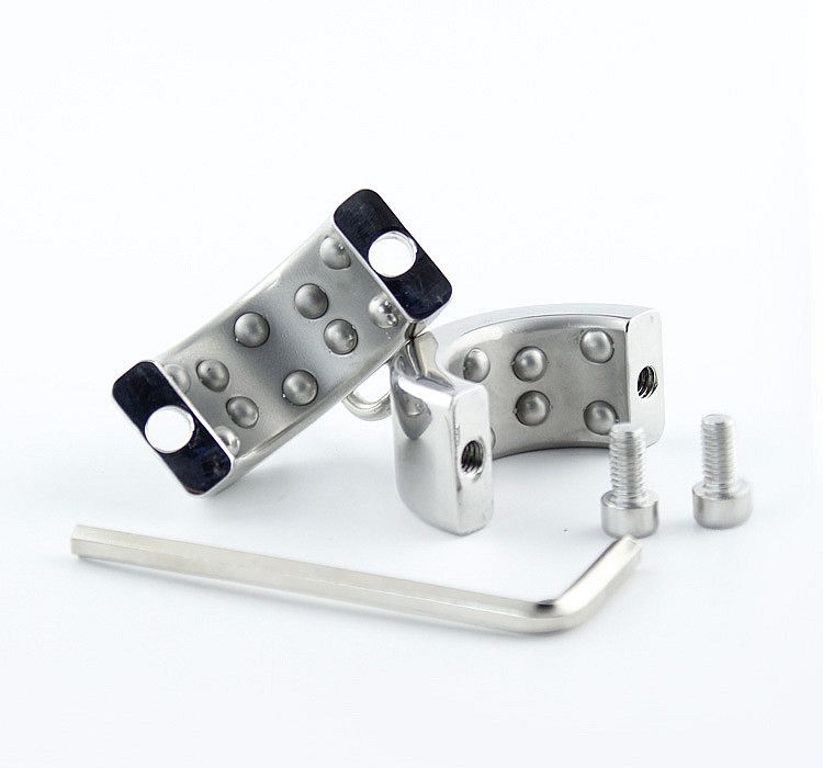 The result is the ideal "bound balls" package - with the bottom rope loop available to hook a leash or for suspension (weights, etc.). Hook up and control him by his balls; the possibilities are endless.