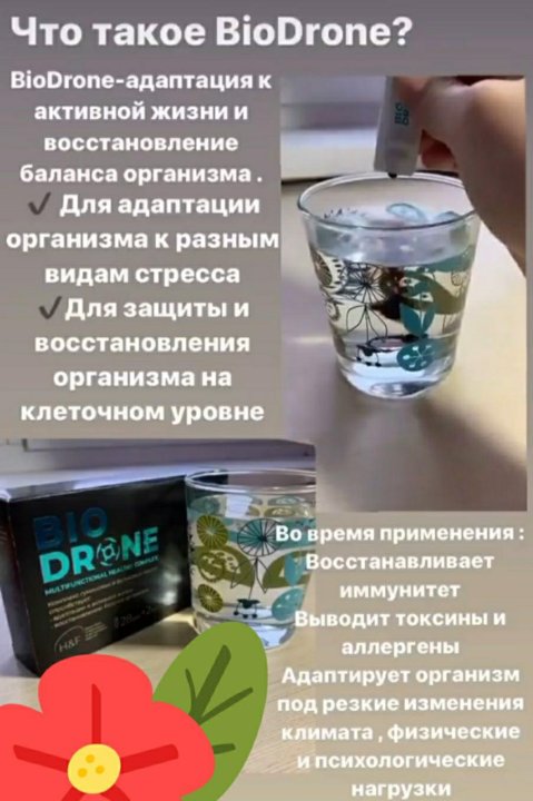 BioDrone restores your body balance and helps you develop an active lifestyle . BioDrone is a natural product, created by nature itself . It is pure power and energy of mother Earth . Net weight: 28 monodoses/2 ml . The cost of one intake: 69,9 rubles . Можно оплатить с подарочного счета .