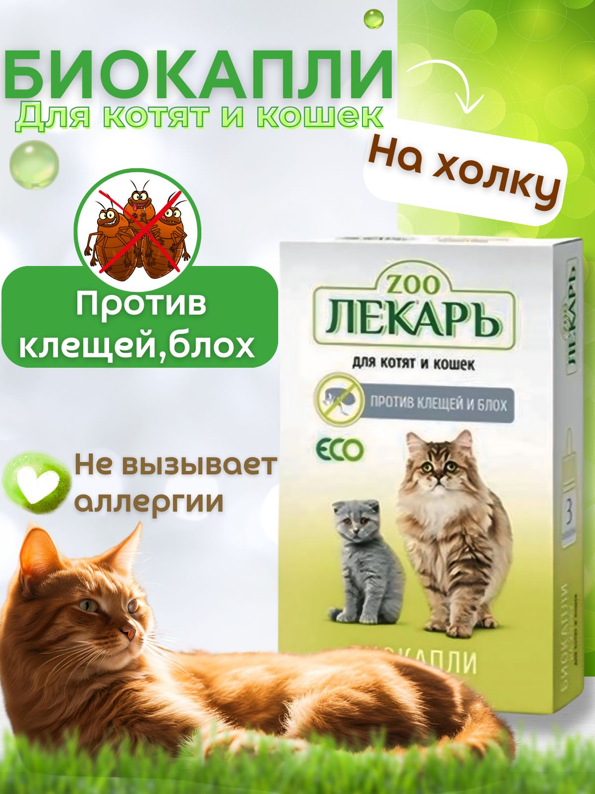 Биокапли на холку для кошек