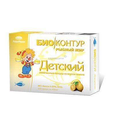 В приложенном документе есть непонятка — название конкретного продукта от конкретного производителя: детский рыбий жир «Биоконтур» со вкусом лимона в мягких жевательных капсулах .