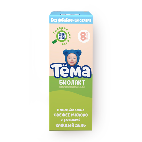 Детский биолакт «Тема» без сахара разработан совместно с ФГБУН «ФИЦ питания и биотехнологии» (бывший НИИ питания РАМН) . Отлично подходит для введения в прикорм питьевых кисломолочных продуктов . * Состав - только молоко и закваска .