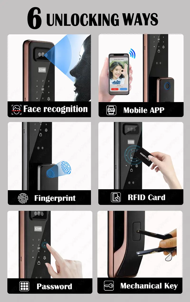 HdwdlSvjrvHere you can buy Biometric 3D Face Recognition Smart Lock Fingerprint App Wifi Cat's Eye Video Remote Unlock Digital Door with Nfc Card Key Code with free delivery to your post office.