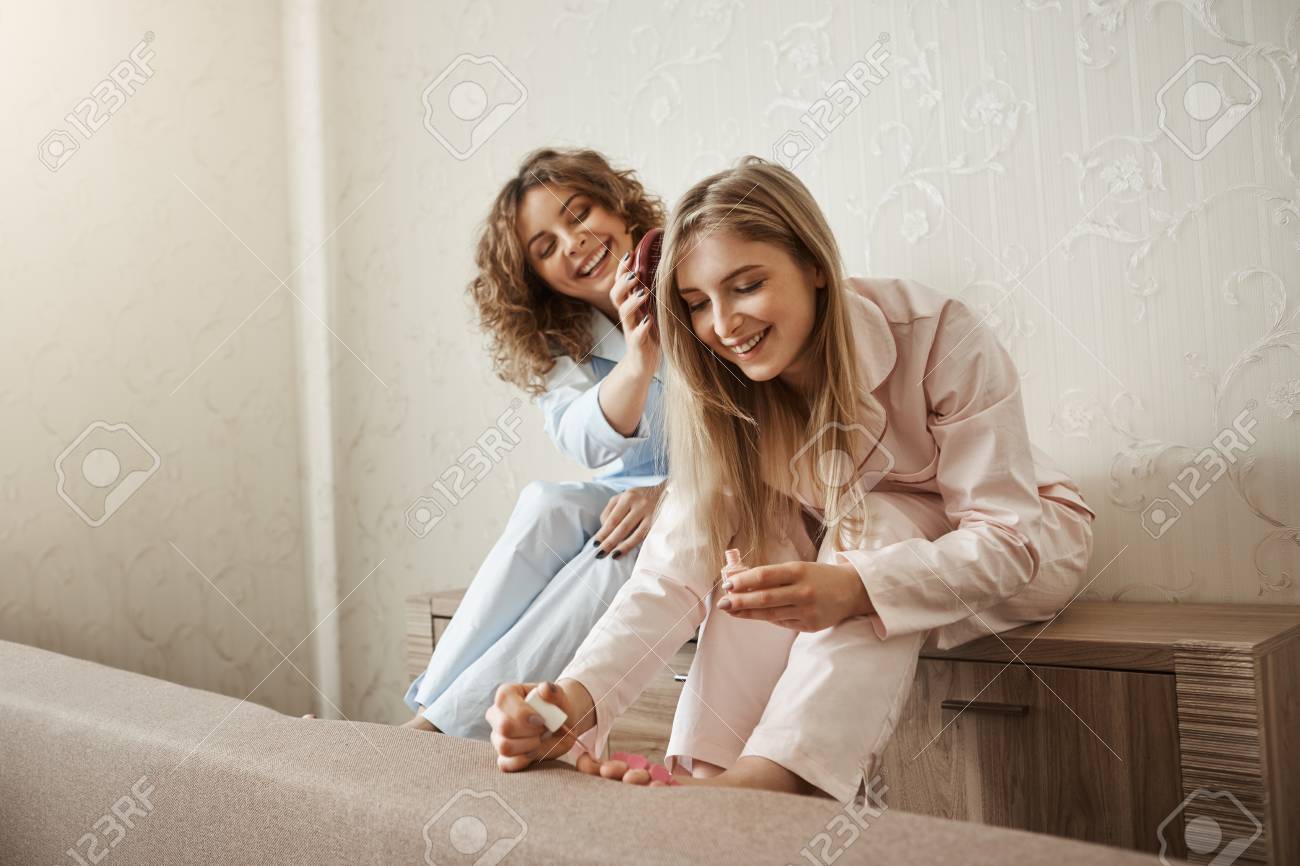 Pigiama party nella sua stanza e si masturba