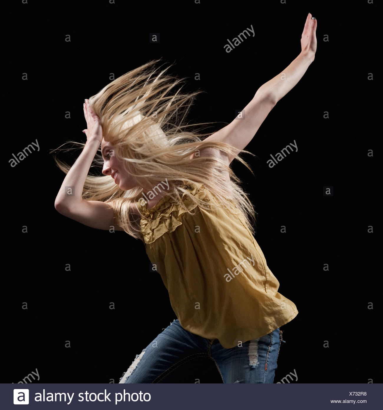 Bionda che si diverte con una pole dance