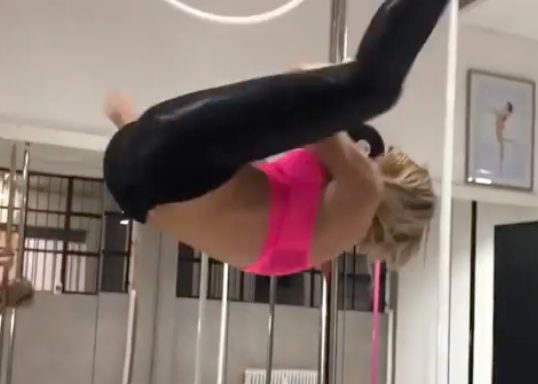 Maddalena Corvaglia si struscia al palo del suo salotto facendo la pole dance direttamente in casa . Poi lancia una frecciatina all'amica Elisabetta Canalis . Un episodio divertente che però . . .